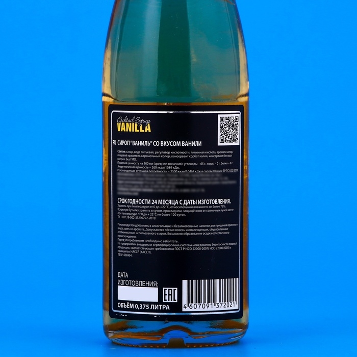 Сироп Barline со вкусом ванили производится исключительно из натурального сырья и не содержит ни грамма примесей химического происхождения. Он имеет длительный срок хранения, что обеспечивается использованием консерванта природного происхождения – сахара. Его содержание в сиропе Ваниль составляет 65%, что обуславливает калорийность продукта в пределах 260 ккал на 100 мл.