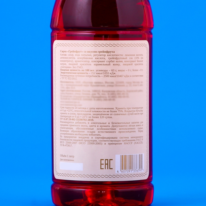 Сироп "Мамин рецепт" со вкусом грейпфрута, ПЭТ, 1 л
