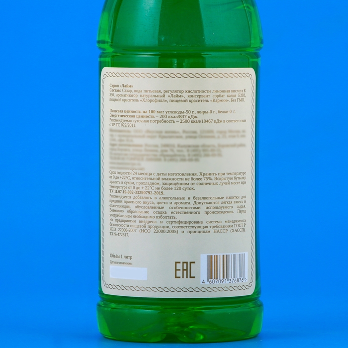 Сироп "Мамин рецепт" со вкусом лайма, ПЭТ, 1 л