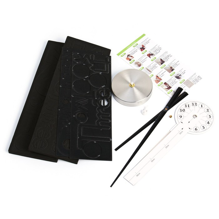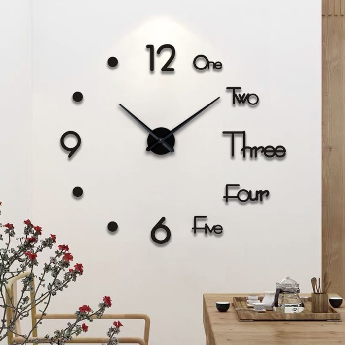Создавайте часы в собственном стиле, проявляйте изобретательность и креативность. Не обязательно располагать числа по кругу — придайте аксессуару необычную форму, поменяйте диаметр циферблата, используйте не все элементы. Комплектующие легко клеятся на стену и без труда снимаются.