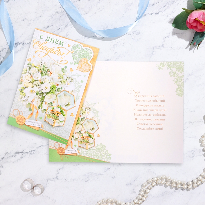 Открытка "С Днём Свадьбы!" шкатулка с кольцами, А4