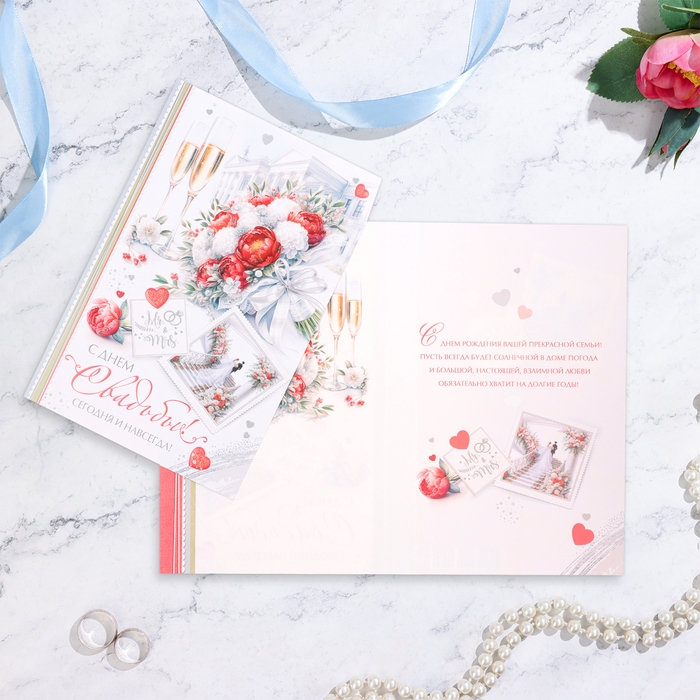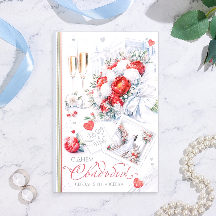 Открытка "С Днём Свадьбы! Сегодня и навсегда" конгрев, глиттер, А4
