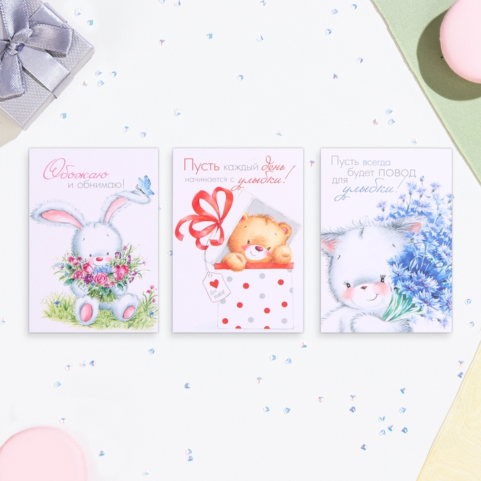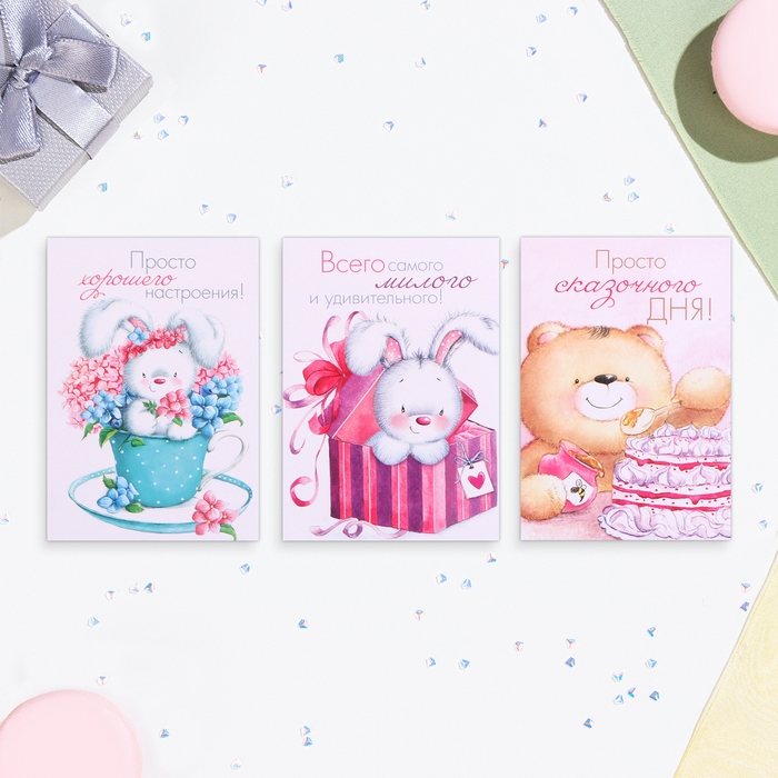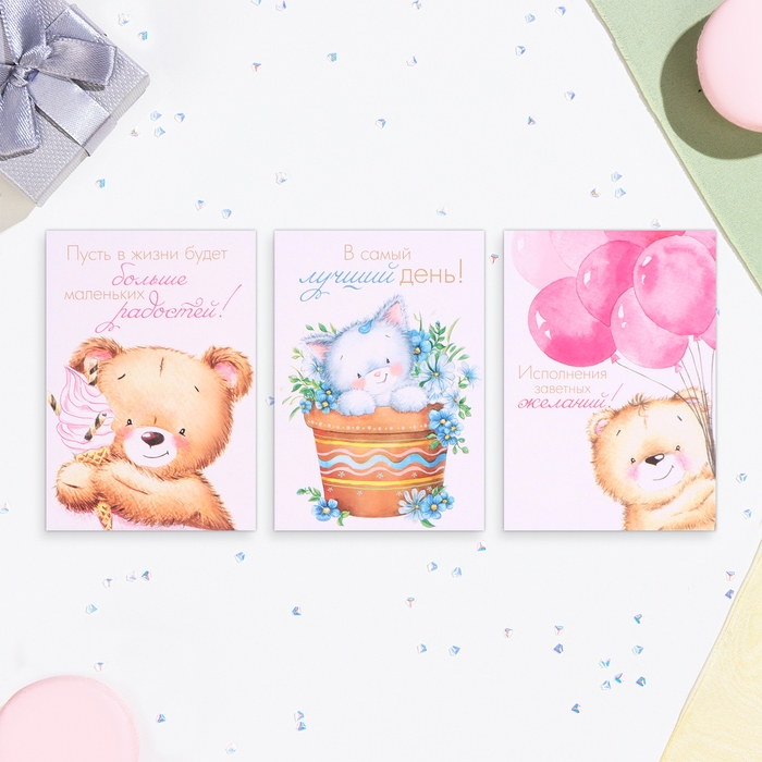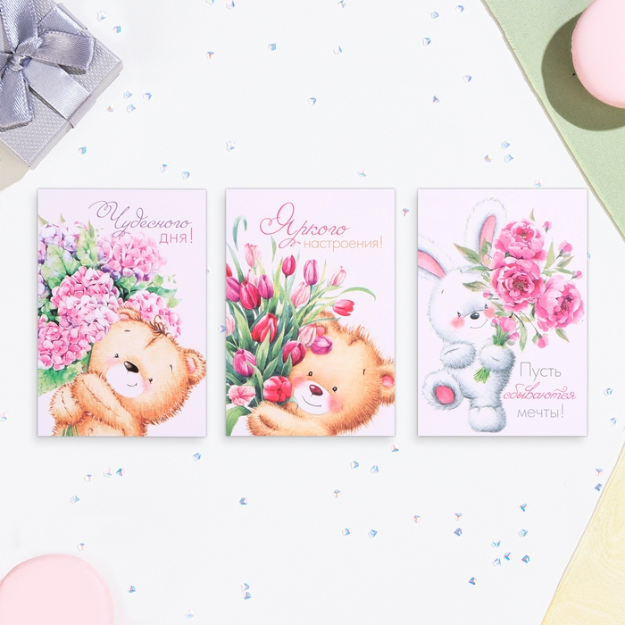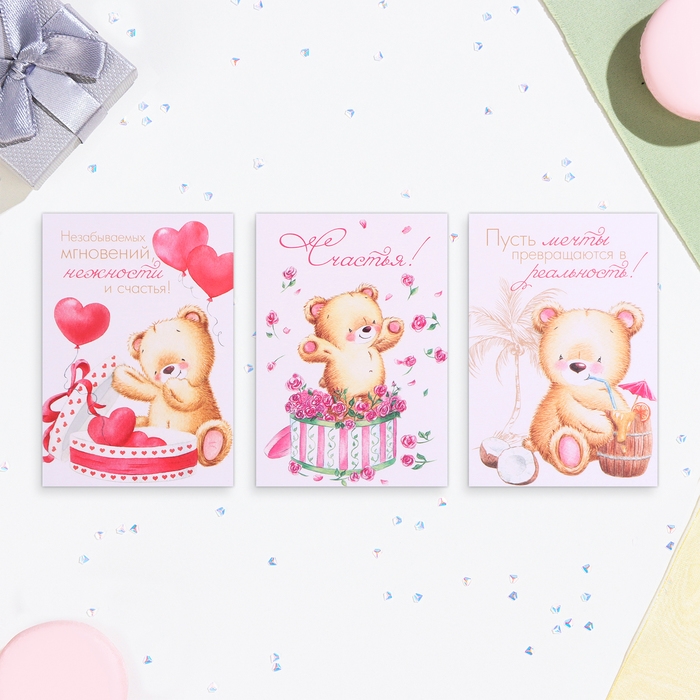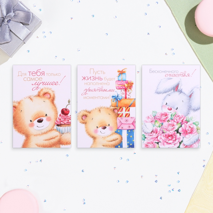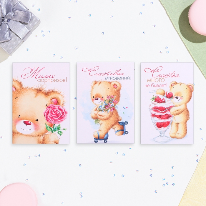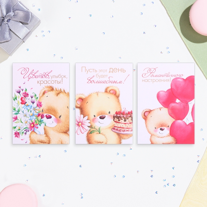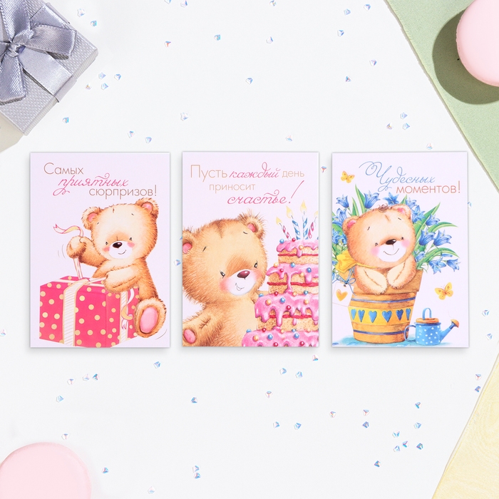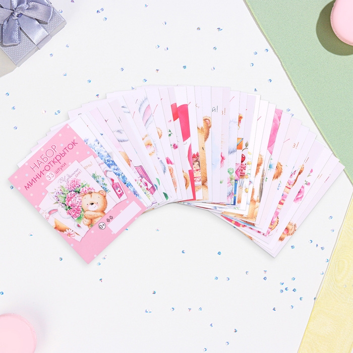 Набор мини - открыток "Медвежата" 33 шт, 10,5 х 7,5 см