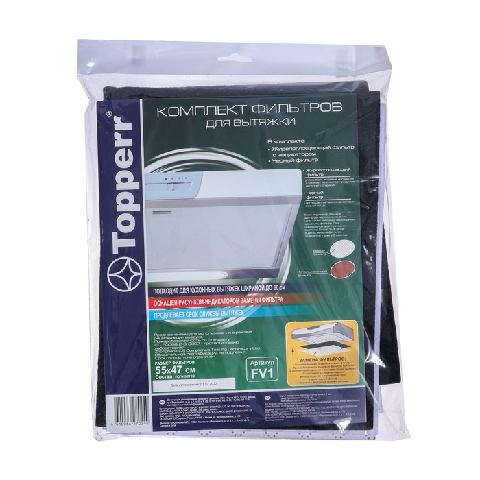 Комплект фильтров Topperr для вытяжек — это набор из двух фильтров размером 470x550 мм.
