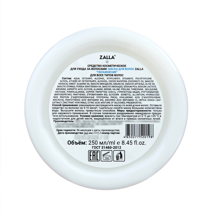 Маска для волос ZALLA "Увлажнение", 250 мл
