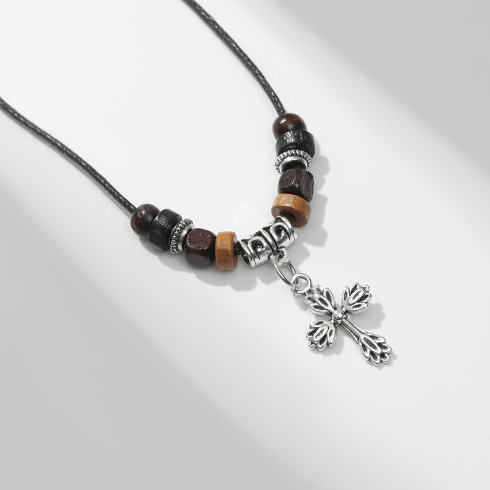 Кулон на шнурке «Унисекс» крест с бусинами, длина регулируемая, 35 см