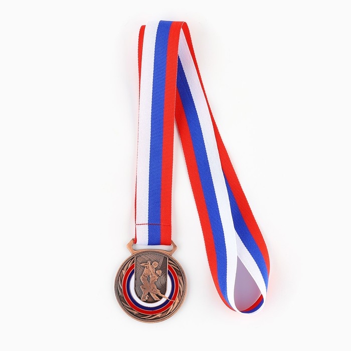 Медаль призовая 013, d= 5 см. 3 место, триколор. Цвет бронза. С лентой
