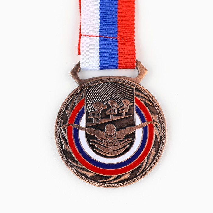 Медаль тематическая 193, «Плавание», d= 5 см. Цвет бронза. С лентой