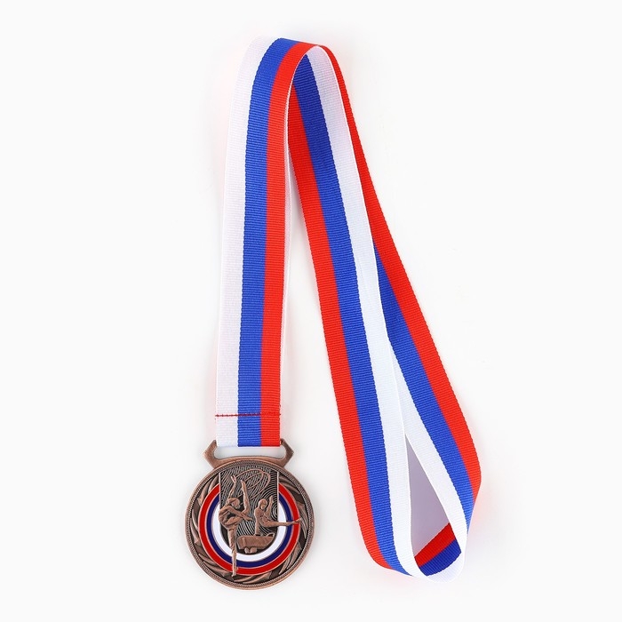 Медаль призовая 013, d= 5 см. 3 место, триколор. Цвет бронза. С лентой