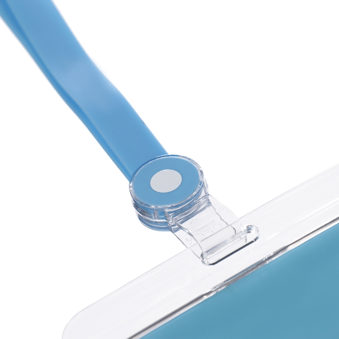 Карабин для бейджа, с держателем-рулеткой, на кнопке, синий