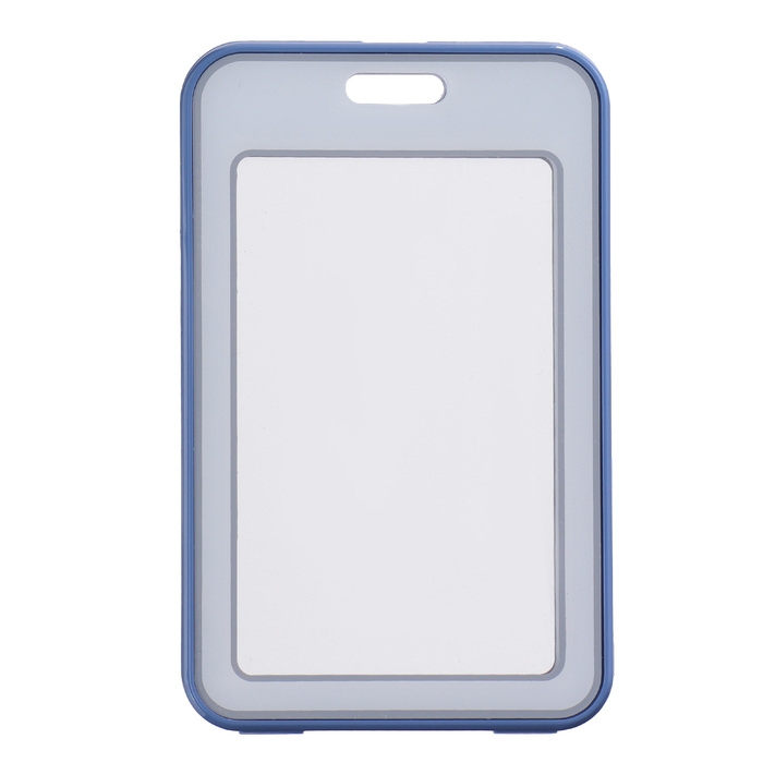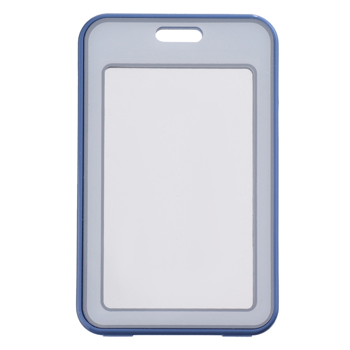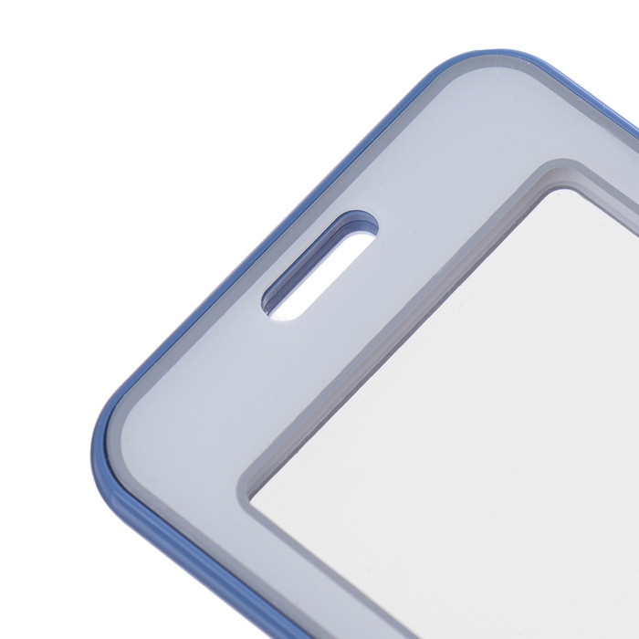 Бейдж-карман горизонтальный пластиковый, внешний 100x68мм, внутренний 85x54мм, лента 80x1,2см, синий.