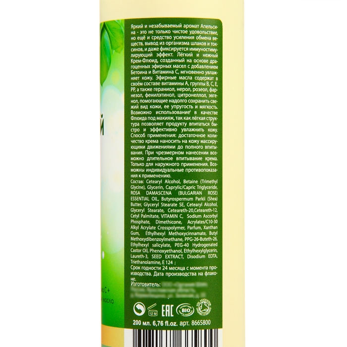 Лёгкий и нежный Крем-Флюид, созданный на основе драгоценных эфирных масел с добавлением Бетоина и Витамина С, мгновенно увлажняет кожу.
