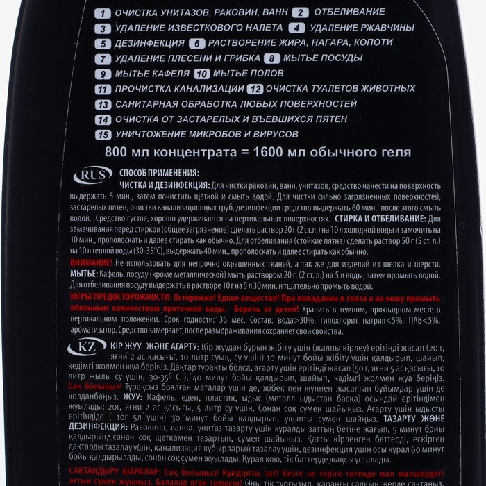 Оно легко удаляет известковый налет, ржавчину, мыльные отложения и другие загрязнения с поверхности ванн, раковин, унитазов и кафеля. Средство обладает антибактериальными свойствами, предотвращает образование плесени и грибка. Объем флакона составляет 800 мл, что делает его экономичным в использовании.