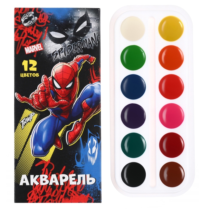 Акварель медовая «Человек-паук», 12 цветов, в картонной коробке, без кисти