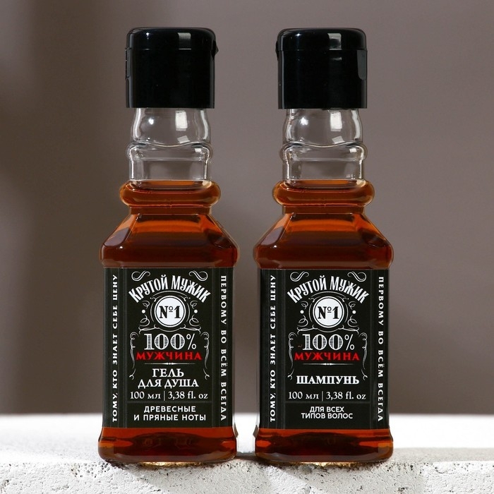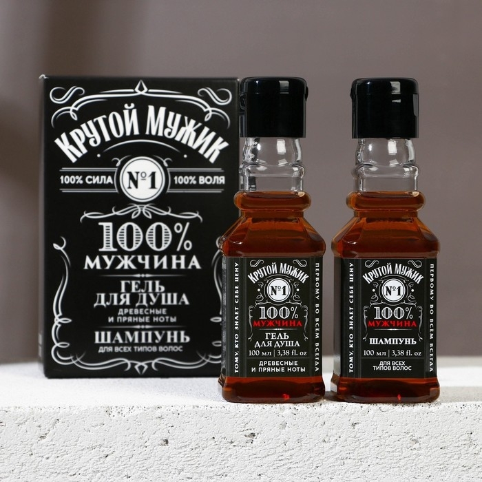 Подарочный набор косметики «Крутой мужик», гель для душа и шампунь для волос во флаконах виски, 2 х 100 мл, Новый Год