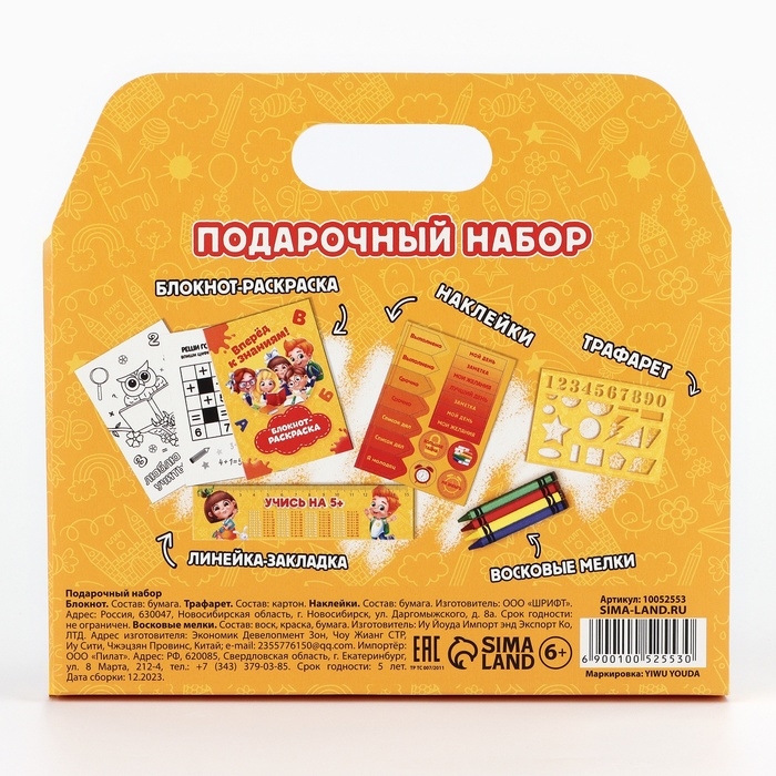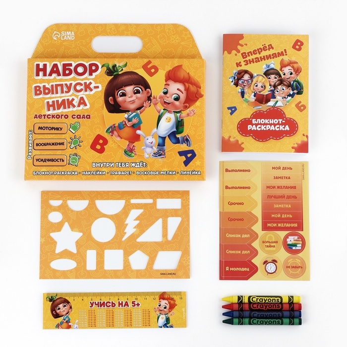Блокнот, Линейка, Мелки, Наклейки, Трафарет