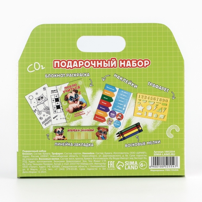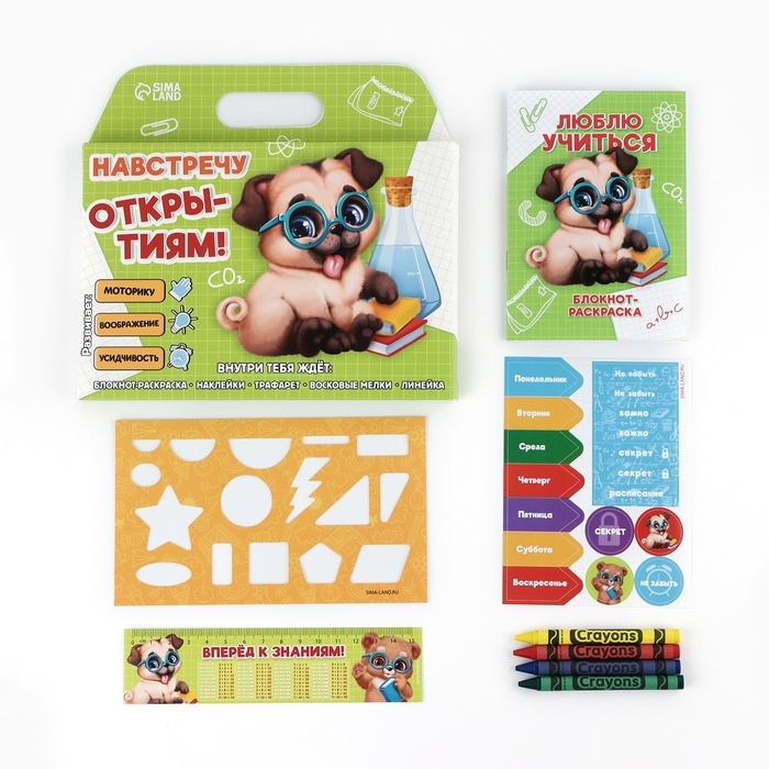 Блокнот, Линейка, Мелки, Наклейки, Трафарет
