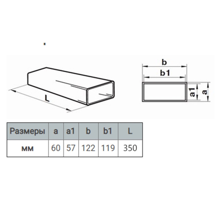 Канал прямоугольный, вентиляционный ZEIN, 60 х 120 мм, 0.35 м