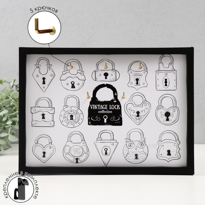 Ключница открытая "Замки" 5 крючков, 23х32 см