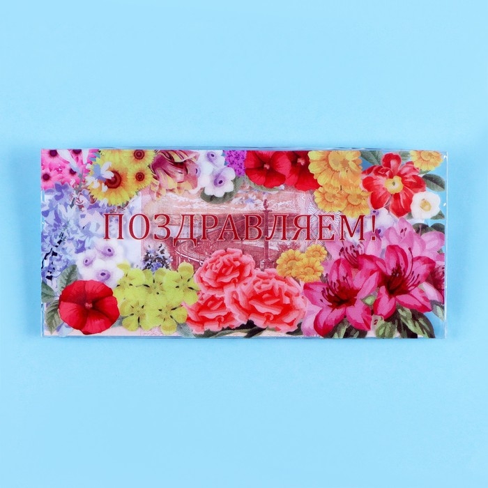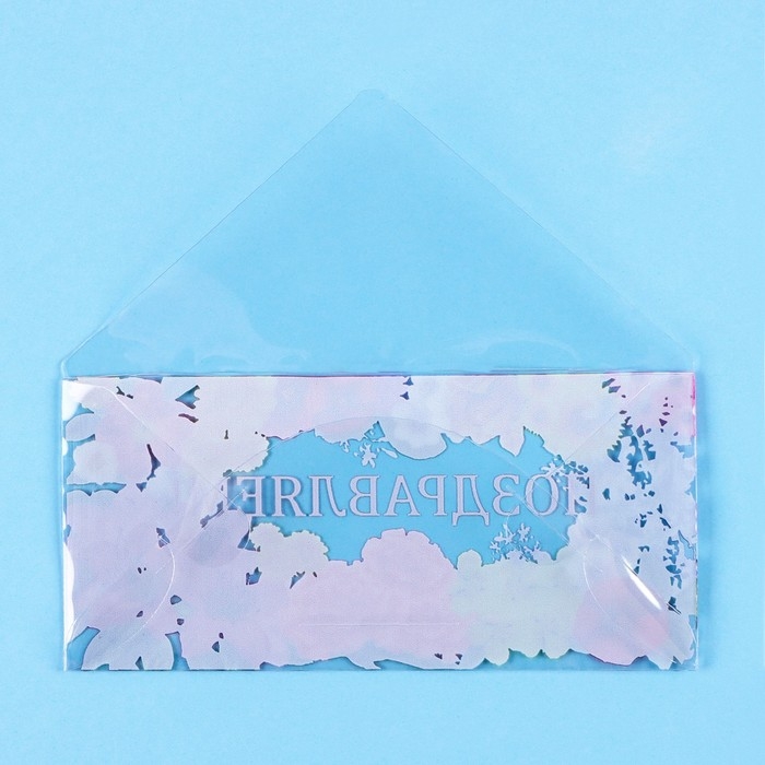 Конверт для денег "Поздравляем!" прозрачный ПВХ, цветы, 16 х 8 см