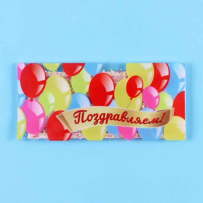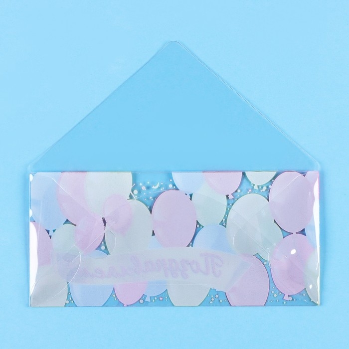 Конверт для денег "Поздравляем!" прозрачный ПВХ, шары, 16 х 8 см