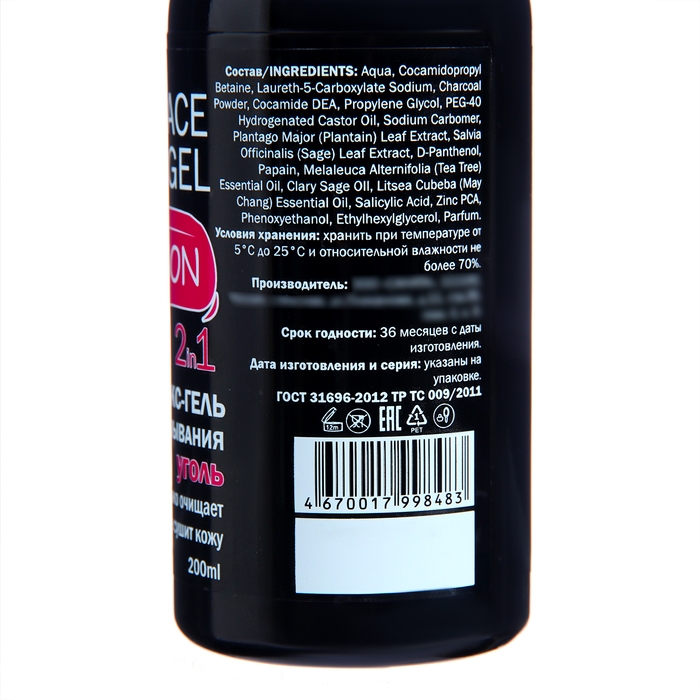Детокс-Гель для умывания Уголь 2в1 специально предназначен для глубокого очищения и бережного отшелушивания кожи.