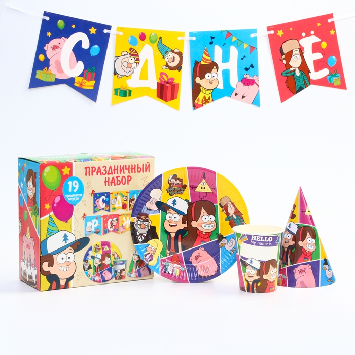 Набор одноразовой бумажной посуды, на 6 персон "С днем рождения!", Гравити Фолз