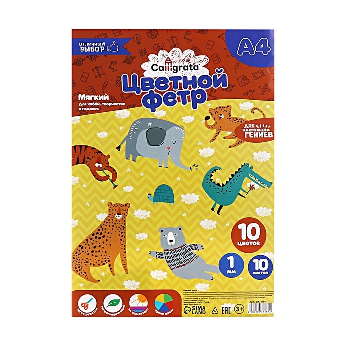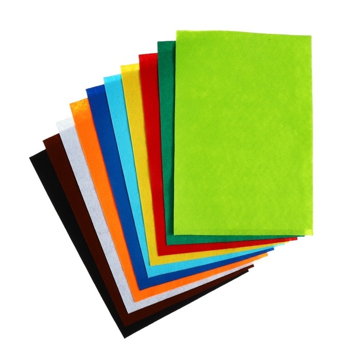 Фетр цветной набор, толщина-1 мм, формат А4, мягкий, 10 листов, 10 цветов, яркие цвета