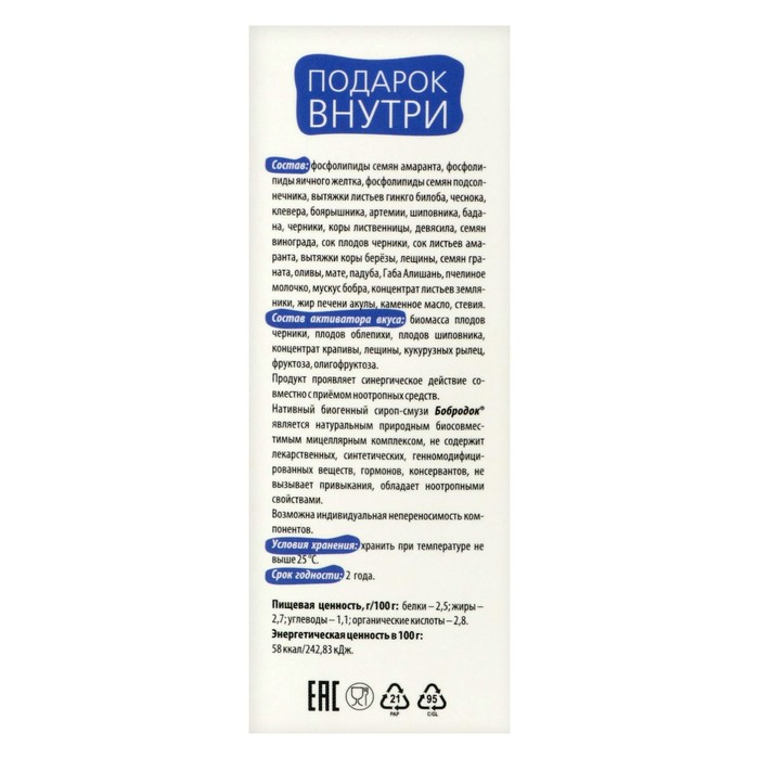 Сироп «Бобродок» без сахара с шикшей, для гиперактивных детей, 50 мл
