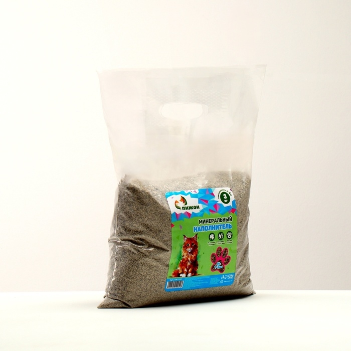 Наполнитель минеральный впитывающий "Пижон Premium", для длинношерстных кошек, 5 л