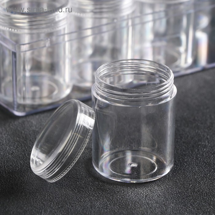Шкатулка пластик для мелочей "Круг" прозрачная набор 12в1 4,8х3,7х3,7 см 5,5х12х16 см