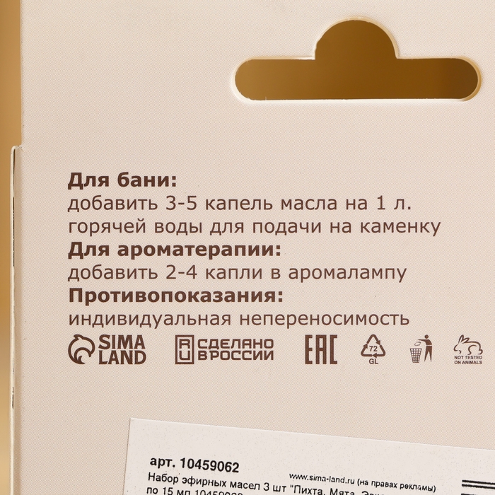 Набор эфирных масел 3 шт "Пихта, Мята, Эвкалипт" по 15 мл