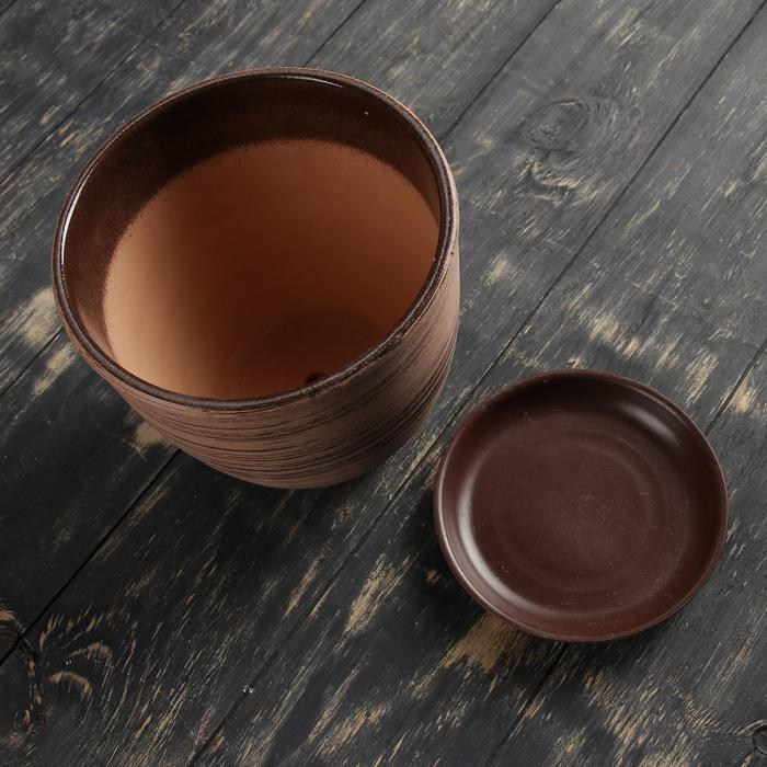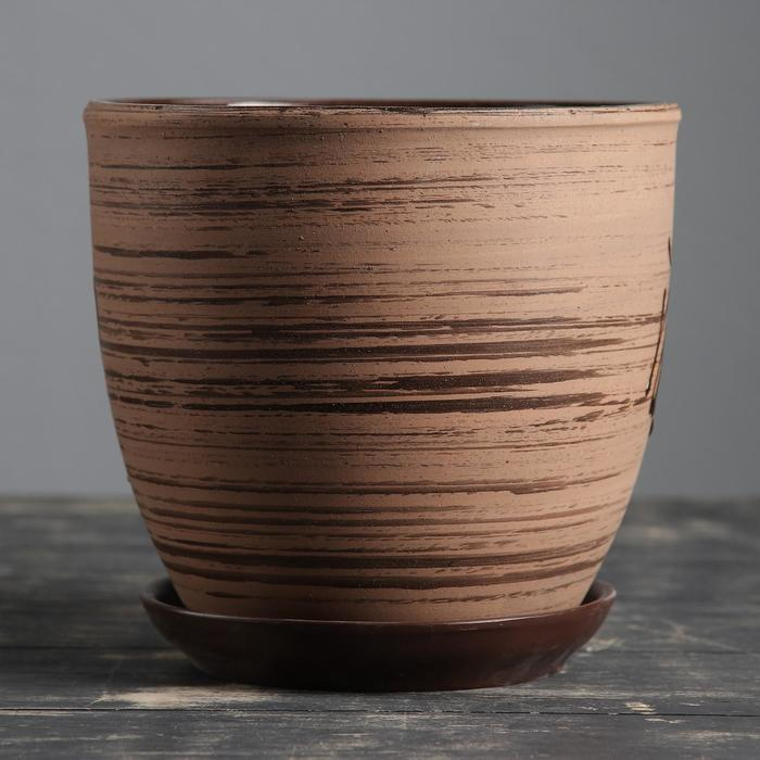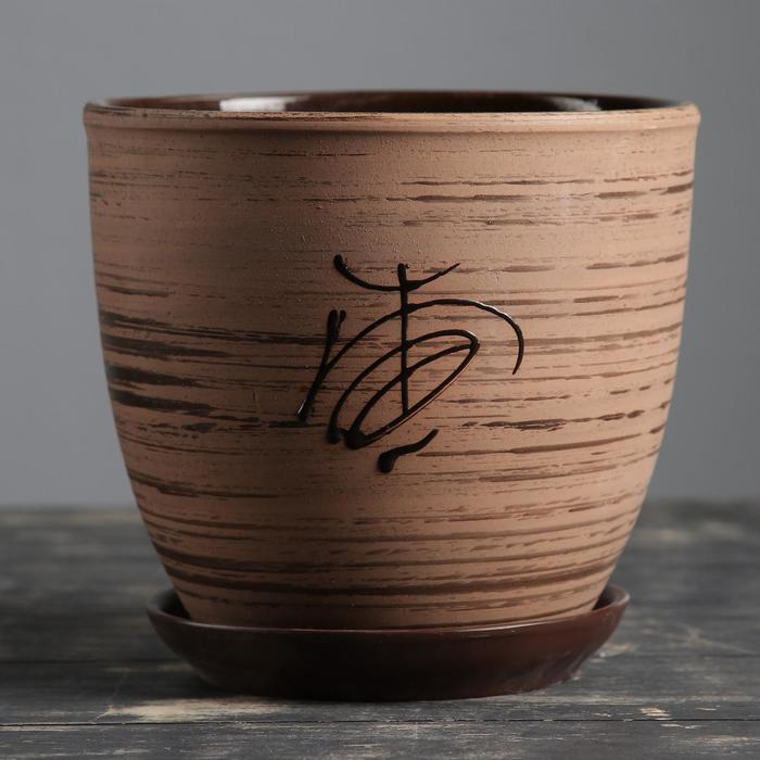 Горшок для цветов «Восток», 2.5 л, d=19 см, h=18 см, керамика, с поддоном, коричневый