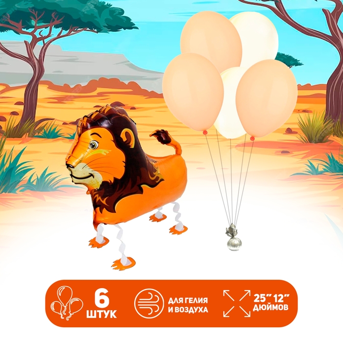 Набор шаров «Лев на лапках», латекс, фольга, 6 шт.
