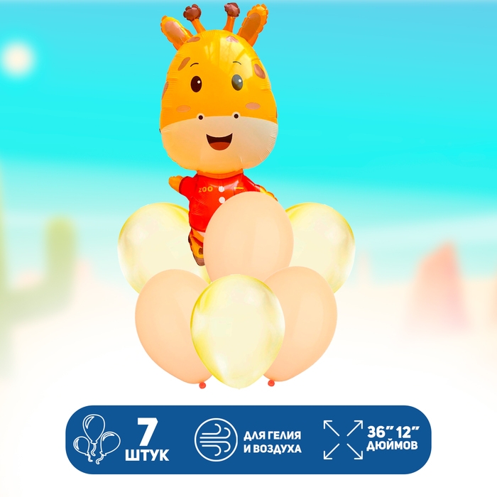 Набор шаров «Жираф», латекс, фольга, 7 шт.