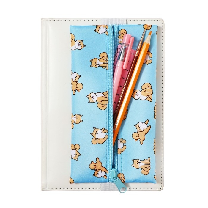 Пенал мягкий, 1 отделение, 95 х 200 мм, плоский, ПМ-шр28 Корги, с резинкой для блокнота,