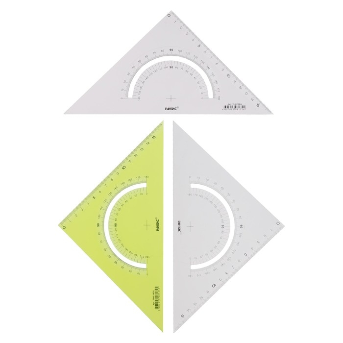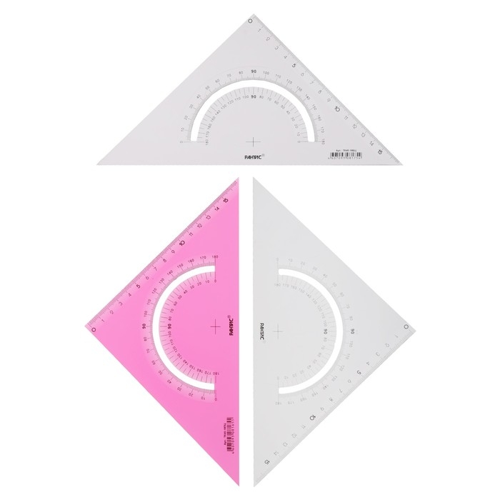 Набор треугольников 3 штуки, Calligrata, 45 градусов, катет 18 см, с транспортиром, прозрачный, МИКС