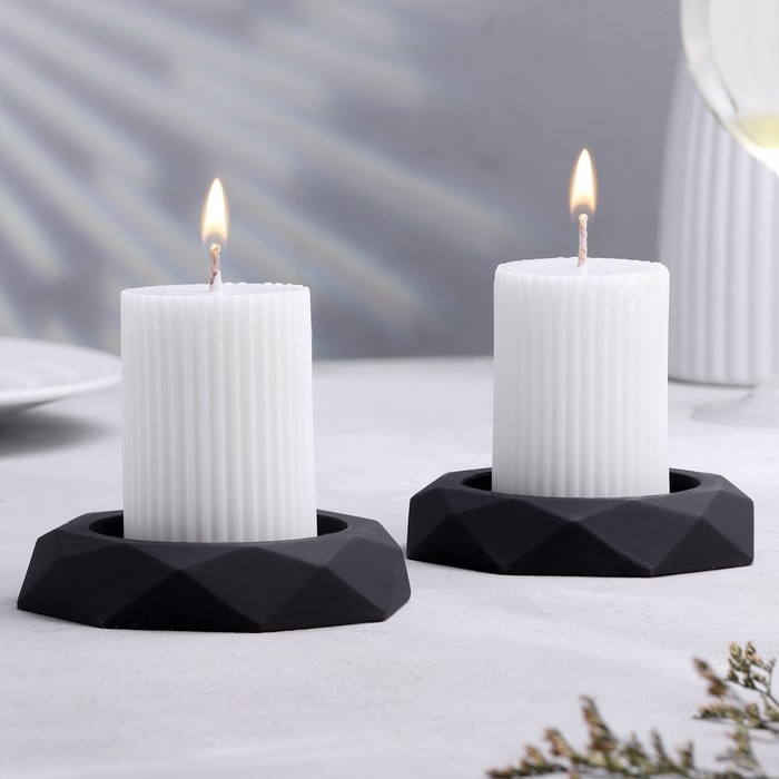 Подсвечник "Грани", набор 2 шт, 2,3х10 см, графит
