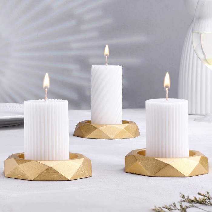 Подсвечник "Грани", набор 3 шт, 2,3х10 см, золото