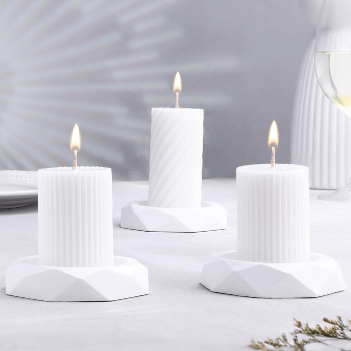 Подсвечник "Грани", набор 3 шт, 2,3х10 см, перламутр