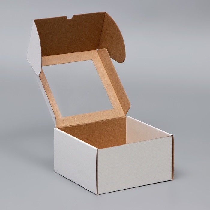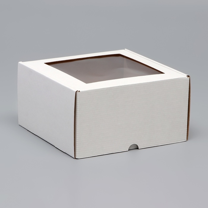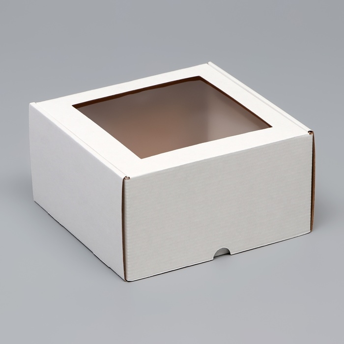 Коробка под торт, белая, с окном, 18 х 18 х 22 см