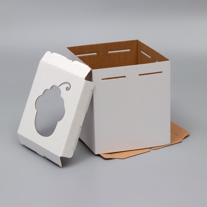 Коробка под торт с окном, "Пироженка", белая, 26 х 26 х 30 см