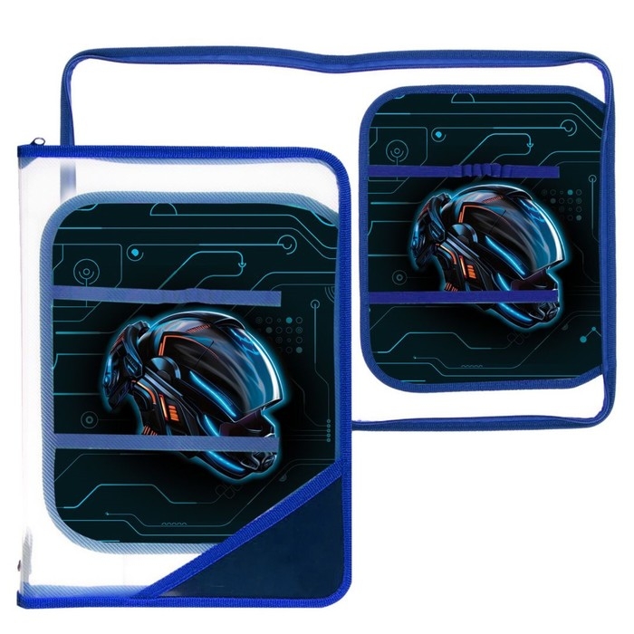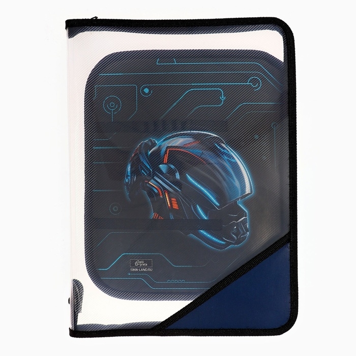 Папка для труда А4, 325 х 230 х 25 мм, молния вокруг, откидная планка, пластиковая, ПТР-1, Calligrata "Мото шлем"