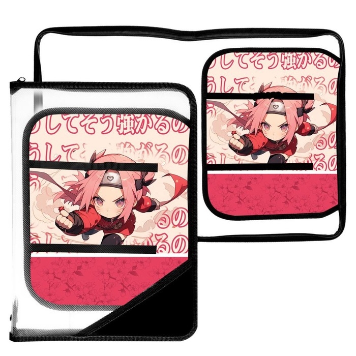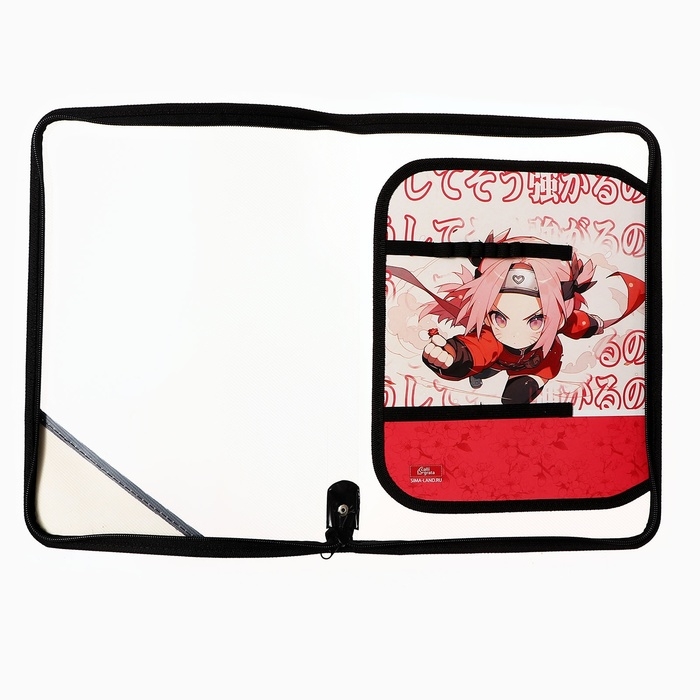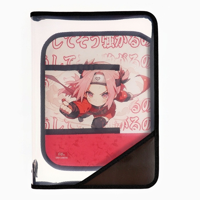Папка для труда А4, 325 х 230 х 25 мм, молния вокруг, откидная планка, пластиковая, ПТР-1, Calligrata "Аниме сакура"