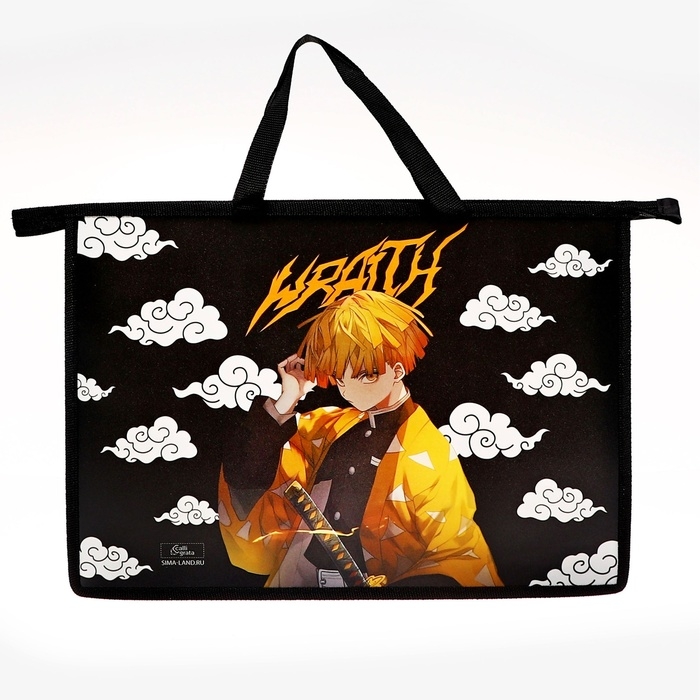 Папка с ручками А4, 335 х 235 х 55 мм, пластиковая, ручки-тесьма, Calligrata "Аниме клинок"