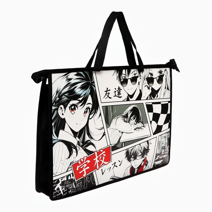 Папка с ручками А4, 335 х 235 х 55 мм, пластиковая, ручки-тесьма, Calligrata "Аниме"