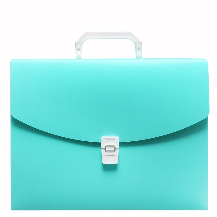 Папка-портфель Calligrata серии «Акварель» c 1 отделением формата А4 предназначена для транспортировки документов и различных предметов. Вмещает до 220 листов. Она изготовлена из пластика толщиной 700 мкм. Выполнена в мятном цвете. Портфель размером 330 х 235 х 35 мм застегивается на замок, имеет пластиковую ручку черного цвета. Папка упакована в пакет.