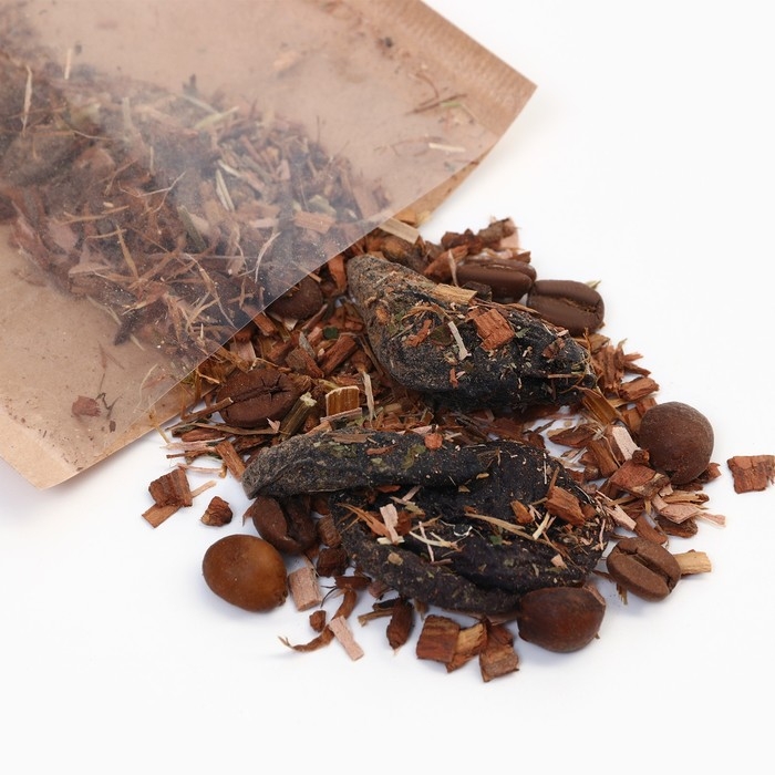 Состав: чернослив плоды, дуб кора, кофе зерна, мелисса трава, мускатный орех, корица кора, гвоздика бутоны.