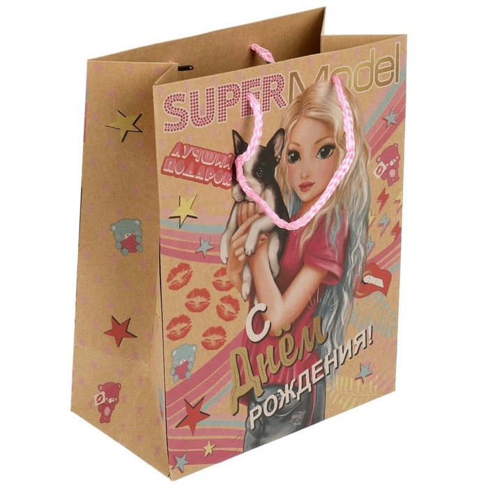 Пакет подарочный крафт M, 18 × 23 × 10 см