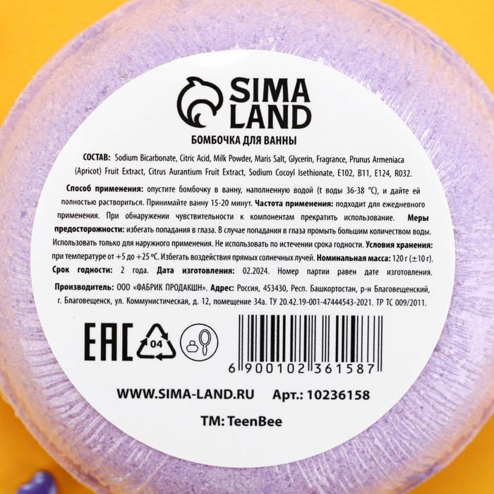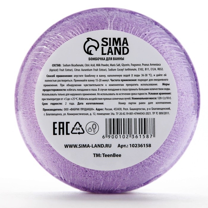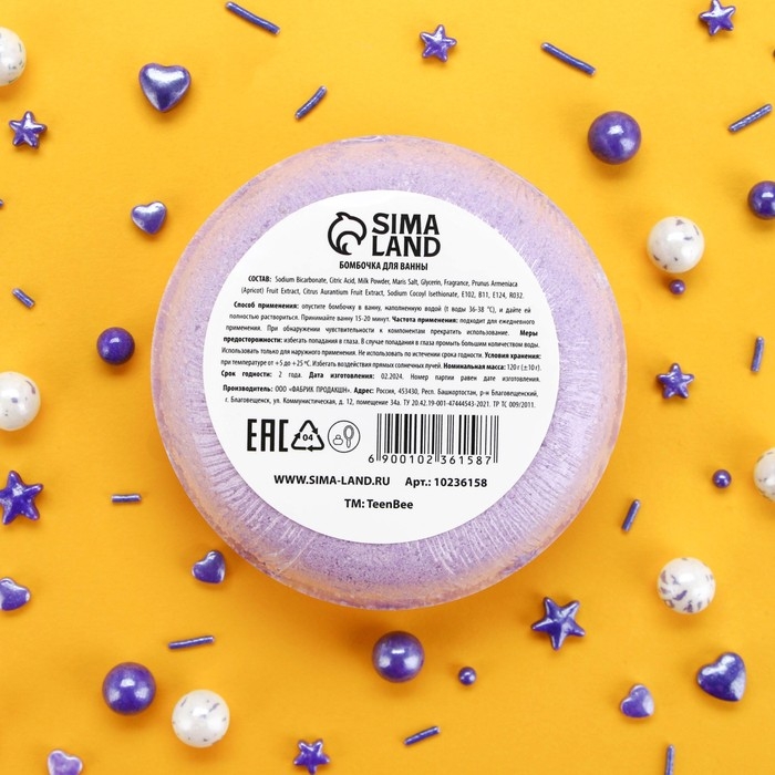 Бомбочка для ванны, 120 г, аромат черники, TeenBee